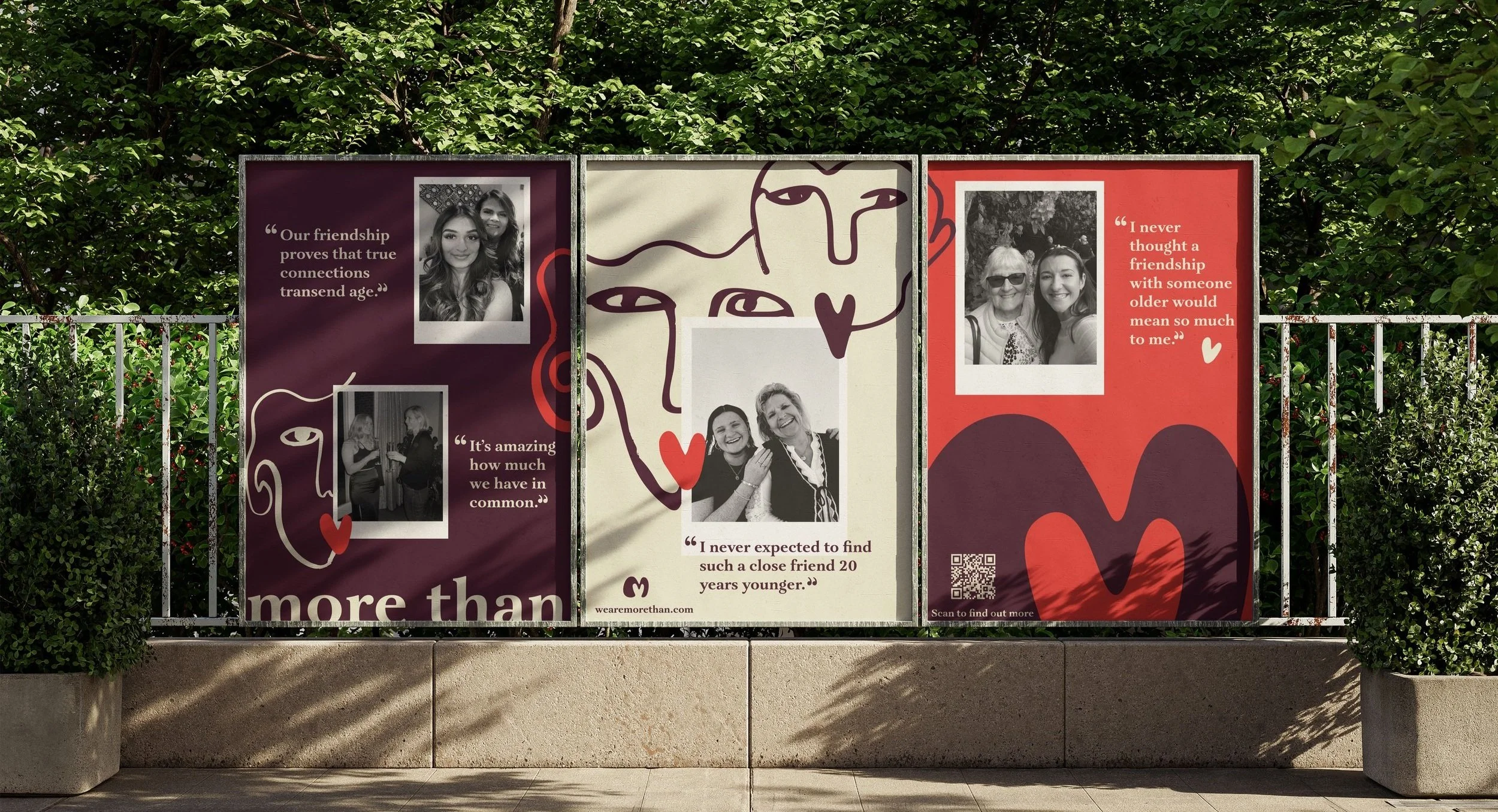 Posters use emotive storytelling, combining quotes from More Than members with imagery that celebrates intergenerational connection.